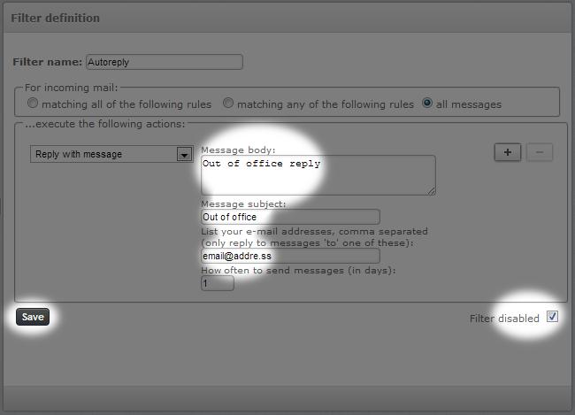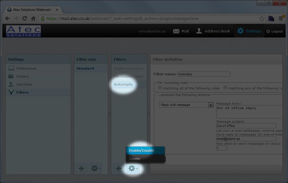 Enable / customise filters & autoreply